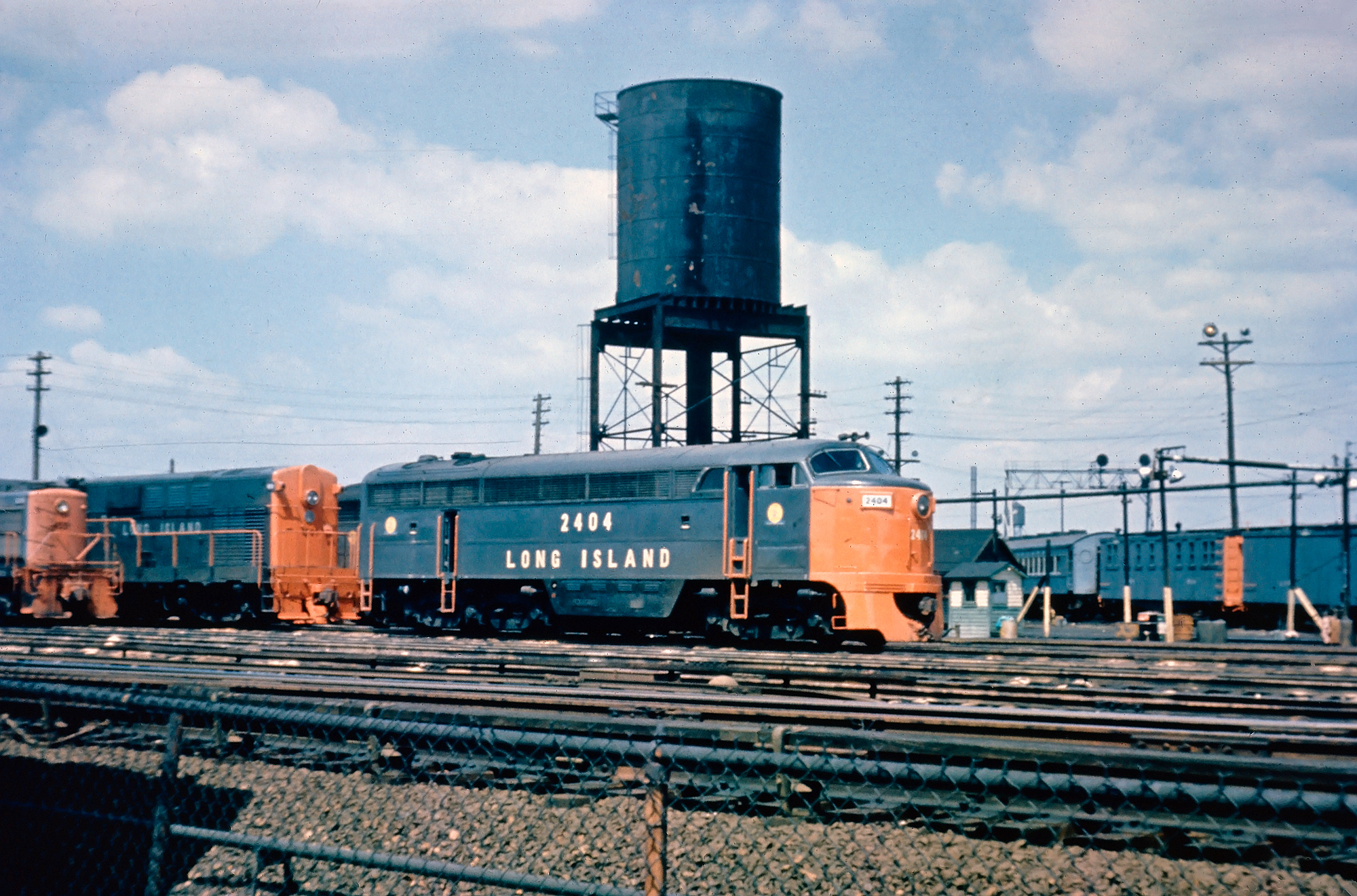 Long Island Rail Road CPA24-5 #2404 lays over at Morris Park engine terminal in Richmond Hill, New York, circa 1955. Meyer Pearlman photo. American-Rails.com collection.These models were available in three different horsepower variations of 1,600, 2,000, and 2,400 with the option of either four or five axles. The former was only offered in their freight models while the latter used an odd B-A1A wheel arrangement in passenger service.