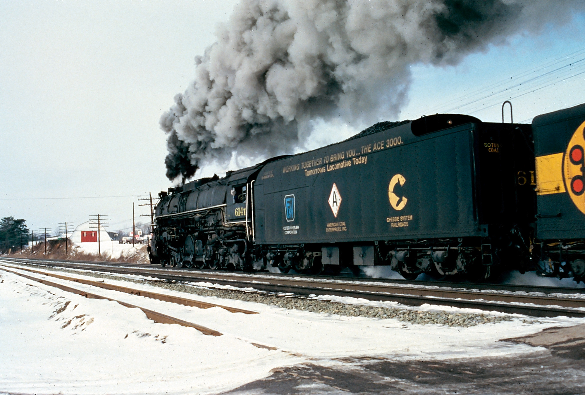 Chesapeake & Ohio 4-8-4 #614T steams through the yard in Huntington, West Virginia during her "ACE 3000" tests in late January, 1985. Mike Bledsoe photo. American-Rails.com collection.Rowland's team consisted of some of the best names in the business of steam technology including: