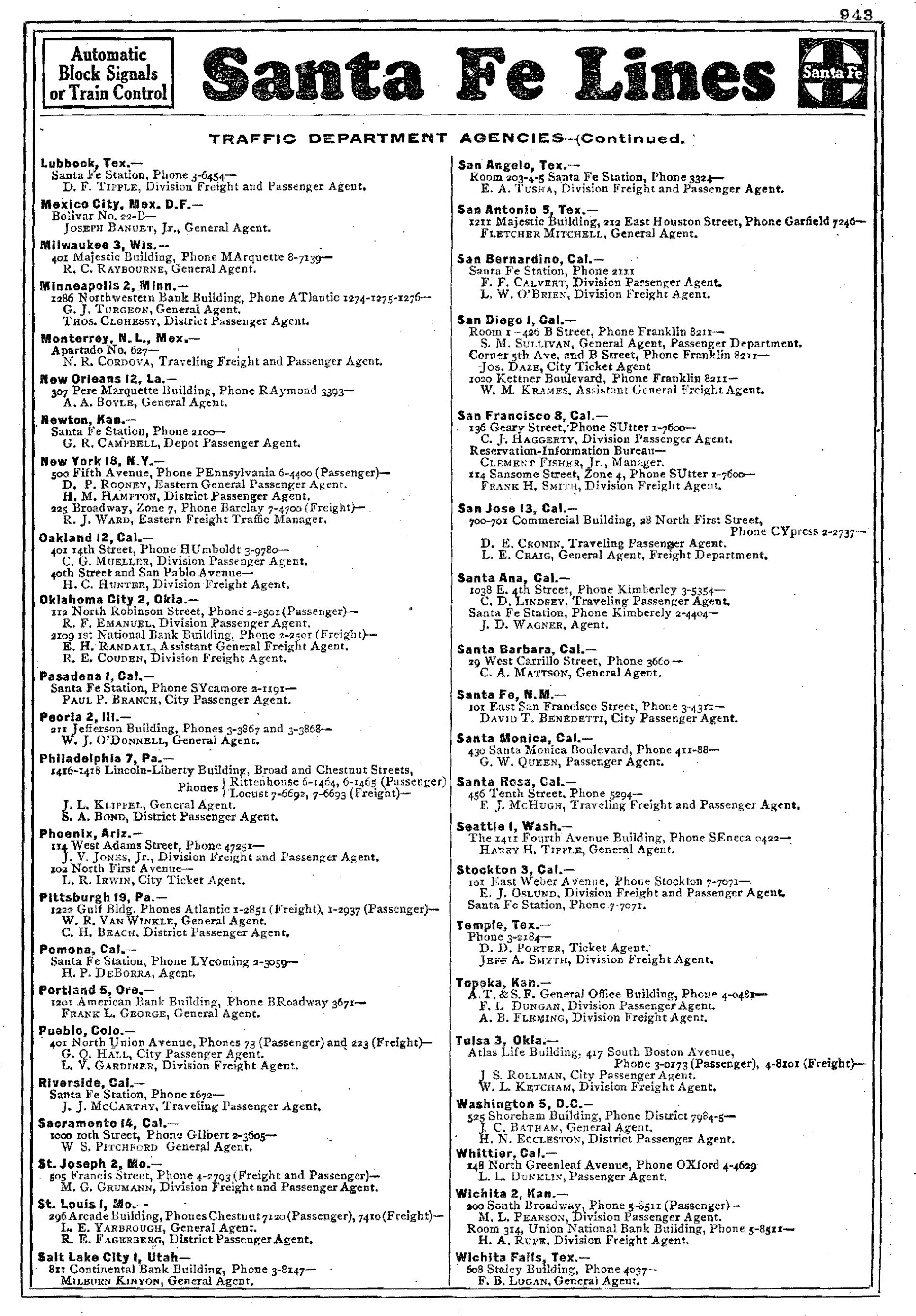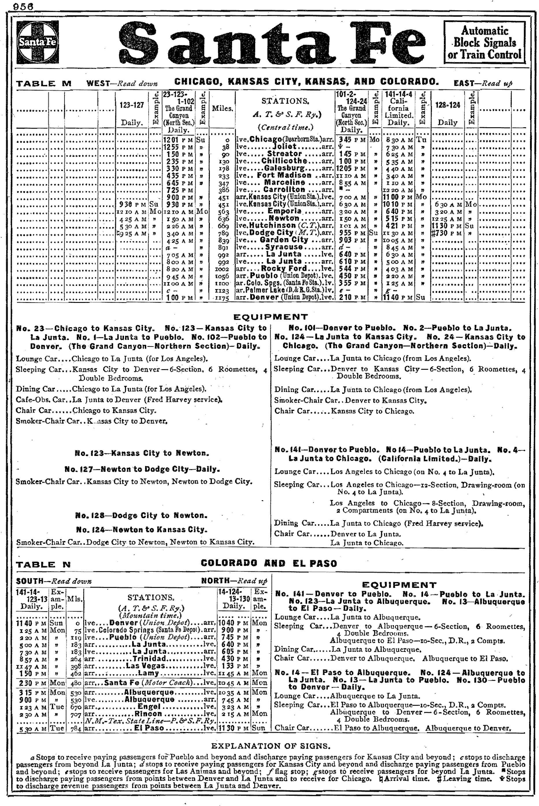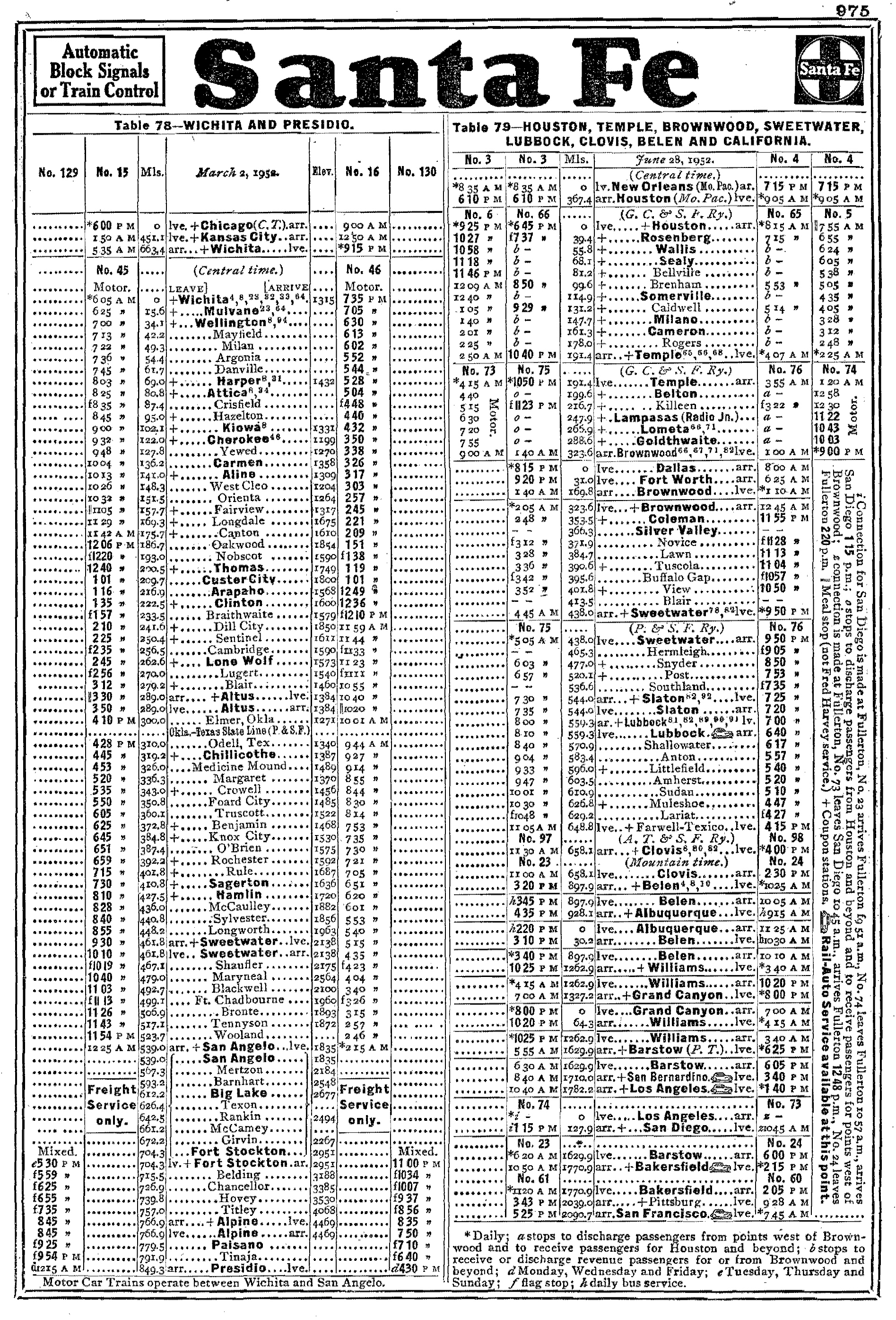 Chicago - Kansas City - La Junta, Colorado - Los Angeles Emporia, Kansas - Oklahoma City - Fort Worth - Houston Emporia, Kansas - Dalies, New Mexico Barstow - Richmond, California Temple - Farwell, Texas Denver - La Junta, Colorado Albuquerque, New Mexico - El Paso, Texas Dallas - Presidio, Texas Kansas City - Tulsa |
