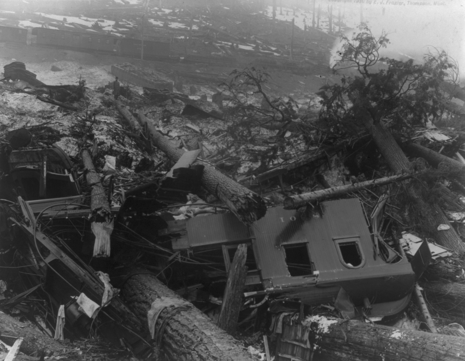 Two GN trains, the Spokane Express No. 25 and mail train No. 27, found themselves stranded in the small railway community of Wellington (later renamed Tye) due to snow-blocked tracks.