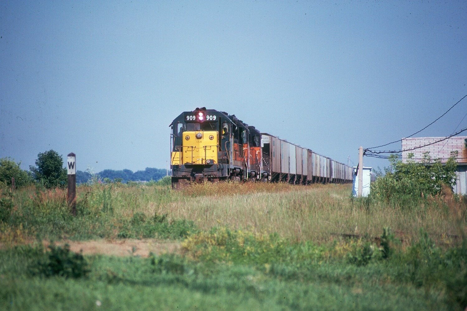 The definition of granger is a farmer or homesteader. The term also describes those railroads which served America's breadbasket and derived a substantial portion of their annual revenue from the movement of agricultural products. One of the most fondly remembered was the Chicago & North Western which maintained a sprawling network of more than 11,000 route miles across Wisconsin, Iowa, Nebraska, South Dakota, Illinois, Missouri, Michigan, and even reached North Dakota and Wyoming. Like all grangers it maintained hundreds of miles of secondary trackage that were lightly patronized by the postwar period but absolutely fascinating to witness. In few other places could one watch a passing freight bobbing along rickety, weed-covered trackage to serve a nearby grain elevator or local customer. While a joy to see in action these branches were a serious drain on a railroad's bottom line.