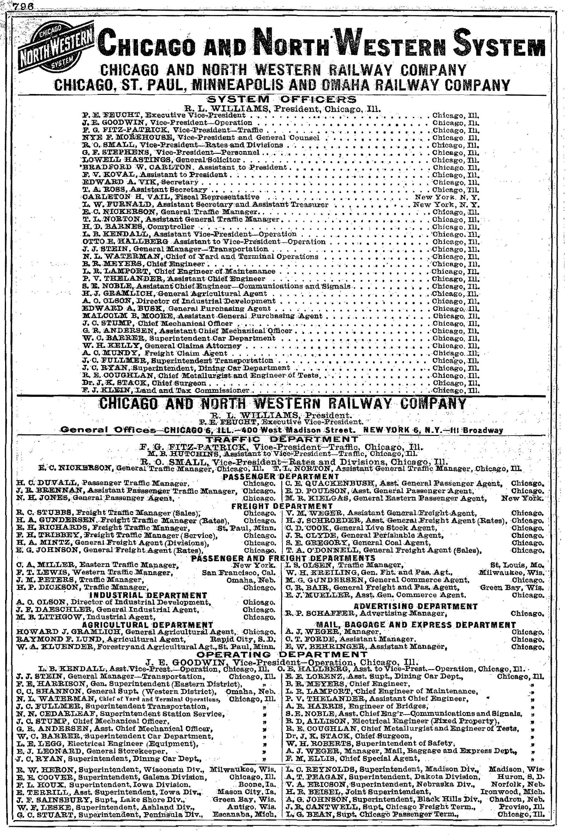 The below roster features denotes the railroad's fleet in the post-1900 era. In addition, subsidiary Chicago, St. Paul, Minneapolis & Omaha's fleet is also included. Steam survived on the C&NW in regular service until May 10, 1956 when the last 4-6-2 handled its commuter assignment.