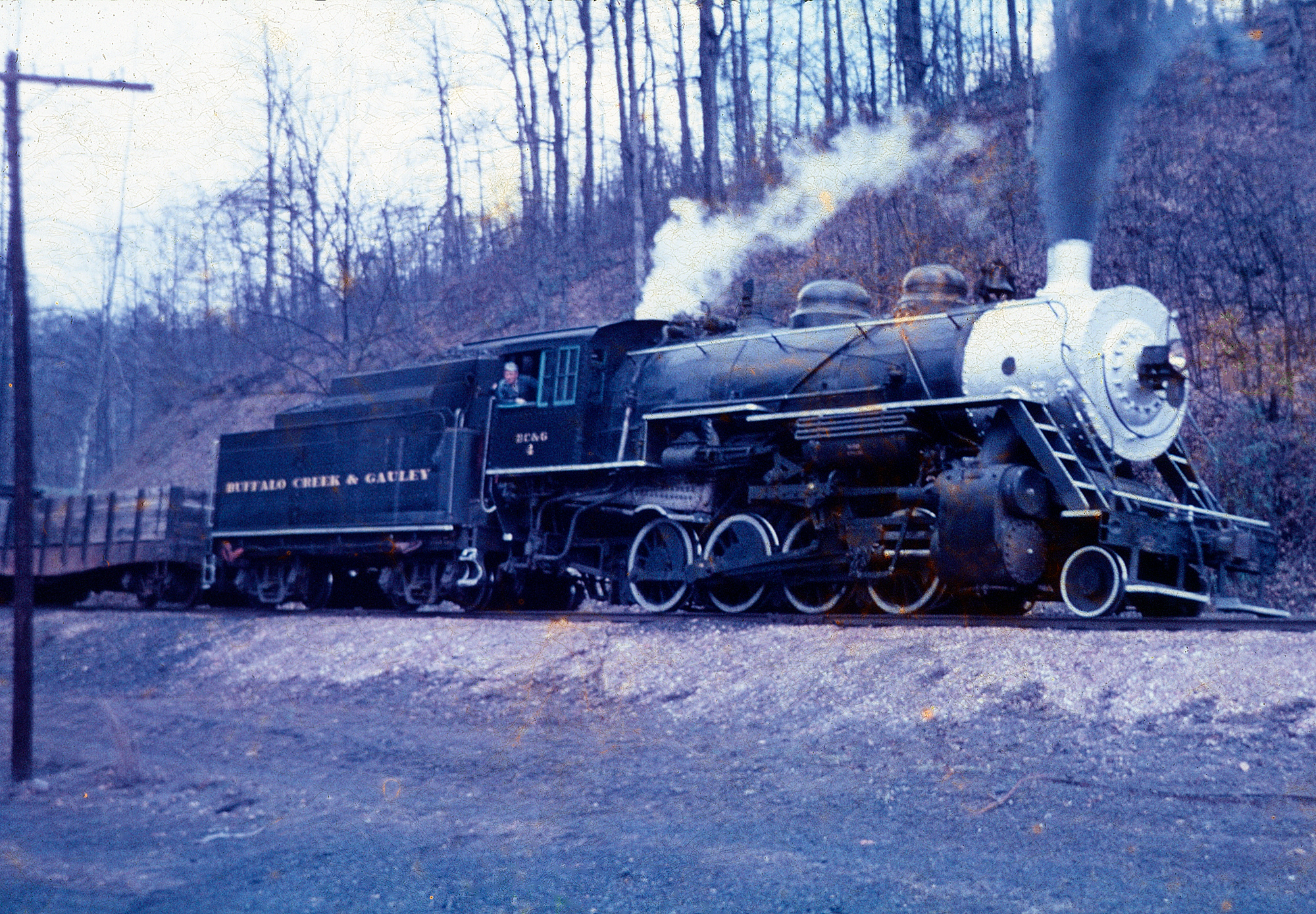 Buffalo Creek & Gauley 2-8-0 #4 steams past the yard in Dundon, West Virginia with a string of empty hoppers in the fall of 1964. Larry Fellure photo. American-Rails.com collection.By the 1880s, the Consolidation type had achieved widespread acceptance as mainline power, heralding a new era of railroad technology.