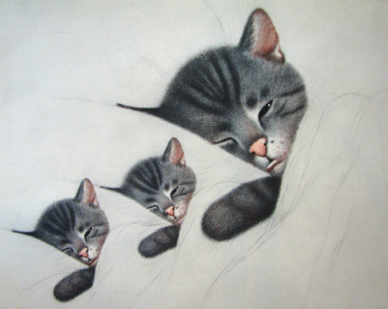 The creator of the sleeping kitten image was an artist by the name of Guido Grenewald who had created the cute feline to promote animal kindness.