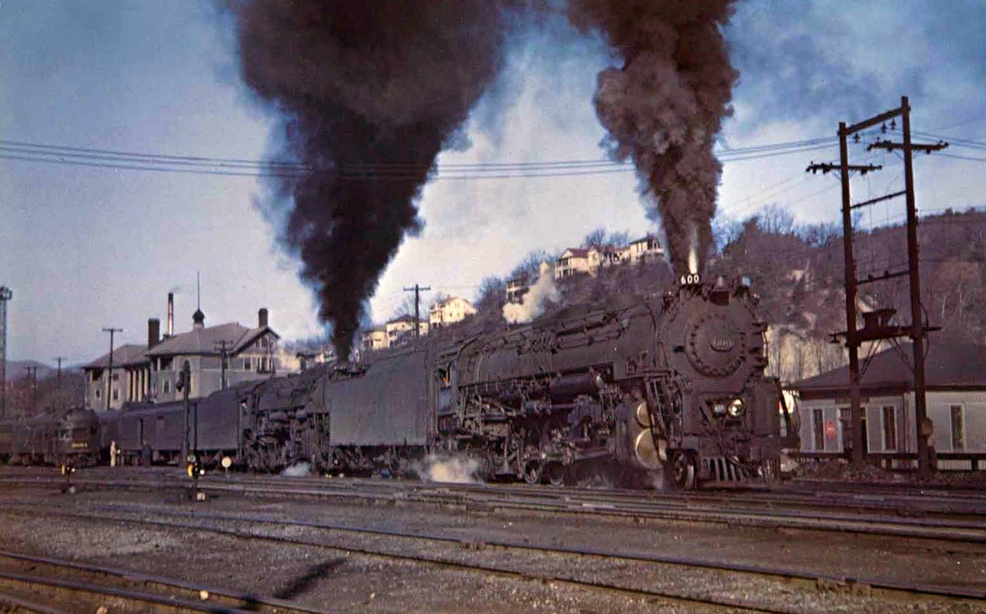 Chesapeake & Ohio 2-6-6-6 #1625 (H-8) charges out of the tunnels at Allegheny, Virginia with an eastbound coal drag on October 19, 1951. Bill Price photo. American-Rails.com collection.In the meantime, it spent the rest of the century continuing to grow with a near-limitless cash flow. On December 25, 1888 the C&O opened service to Cincinnati, Ohio following the southern bank of the Ohio River via Ashland, Augusta, and Covington, Kentucky.