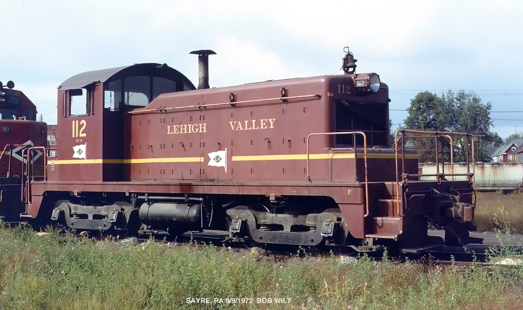 Lehigh Valley SW1 #112 was photographed here at the road's terminal in Sayre, Pennsylvania on September 9, 1972. Bob Wilt photo. Warren Calloway collection.While Electro-Motive produced a wide range of highly successful switchers such as the NW2, SW1200, SW1500, and SW9 the series can be traced back to a group of early six and nine hundred horsepower variants built during the latter 1930s.