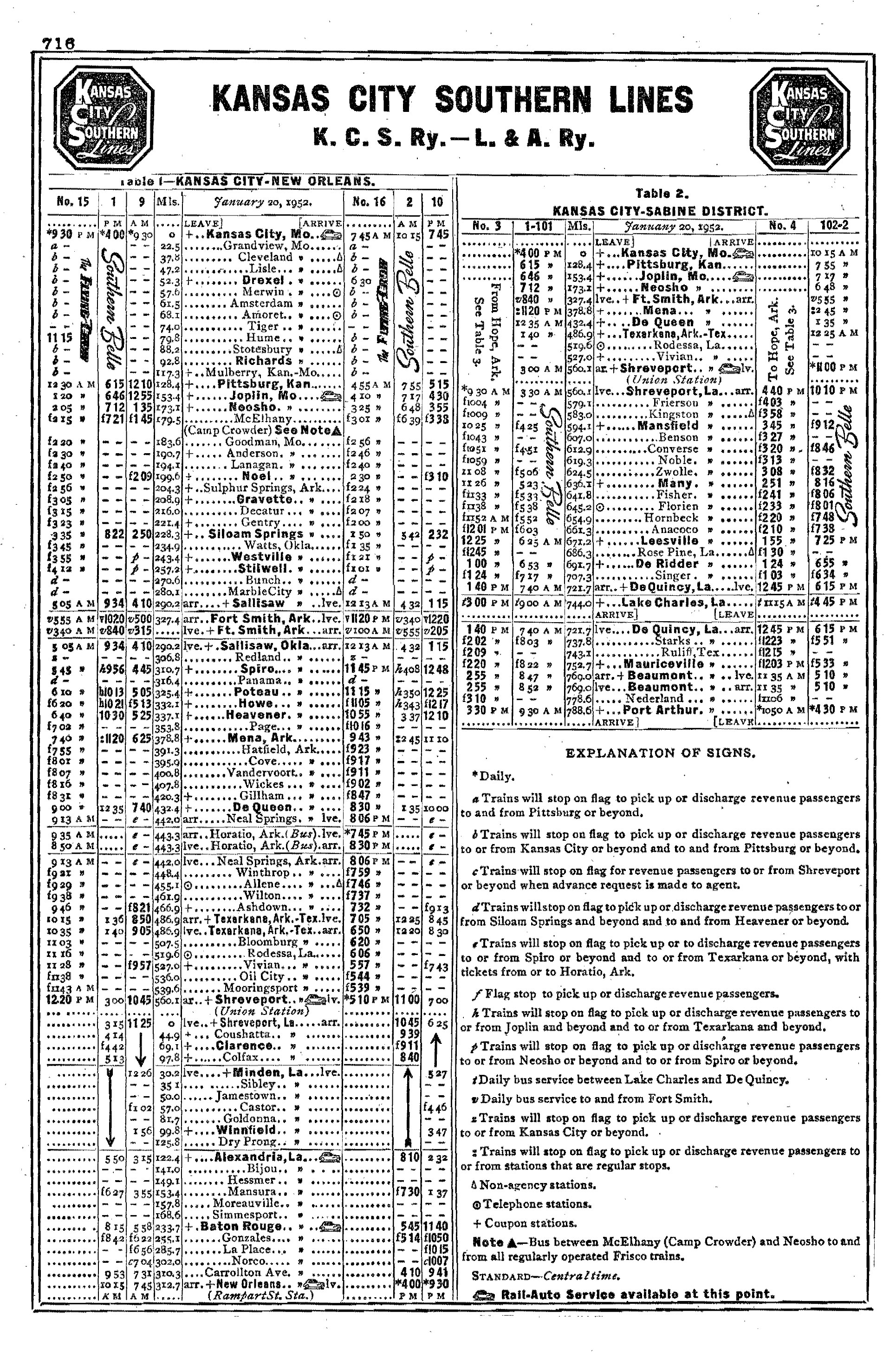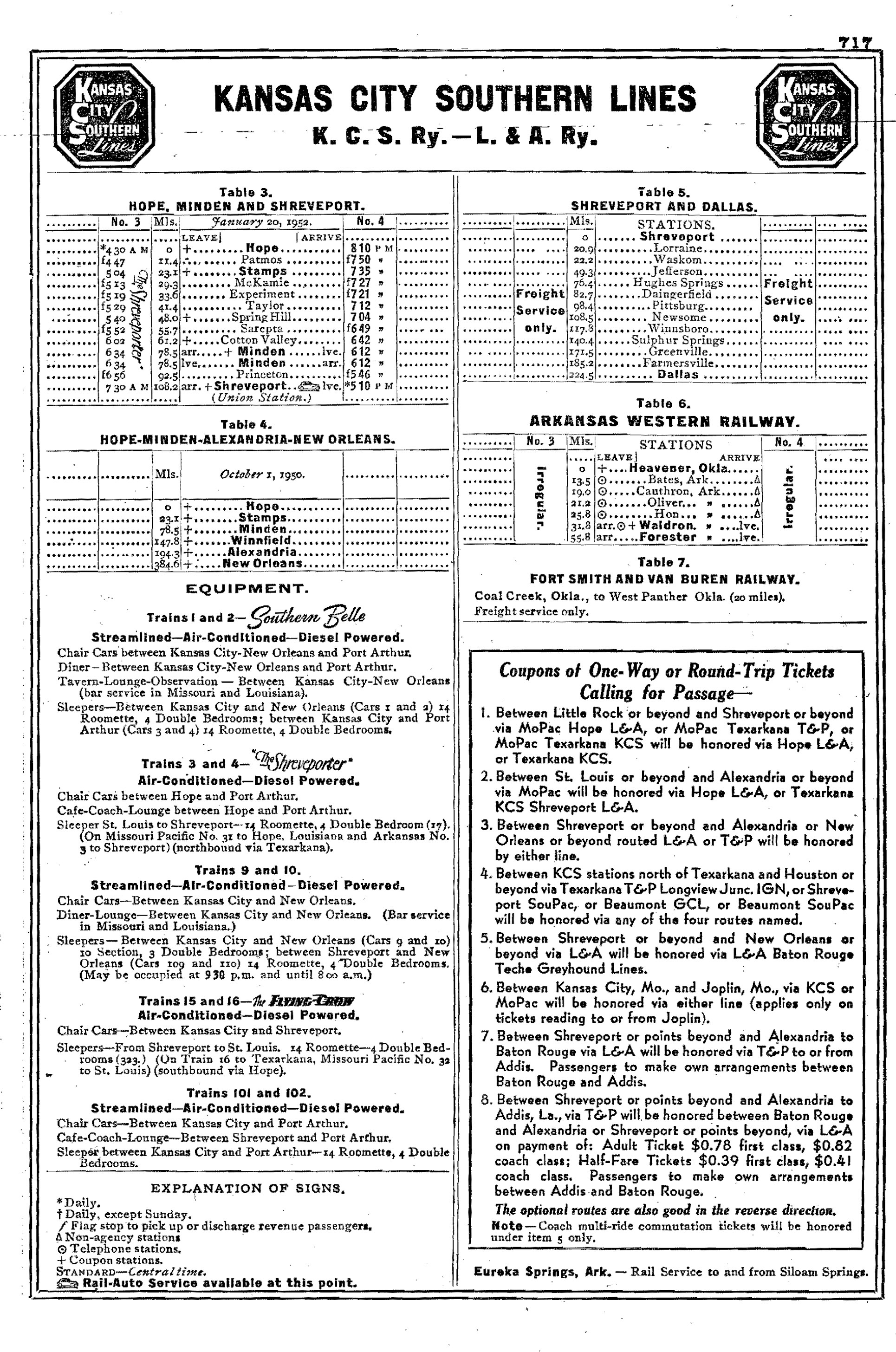 Kansas City - Shreveport, Louisiana - Port Arthur, Texas Dallas - Shreveport - New Orleans Shreveport - Minden, Louisiana - Hope, Arkansas Minden - Alexander, Louisiana | |