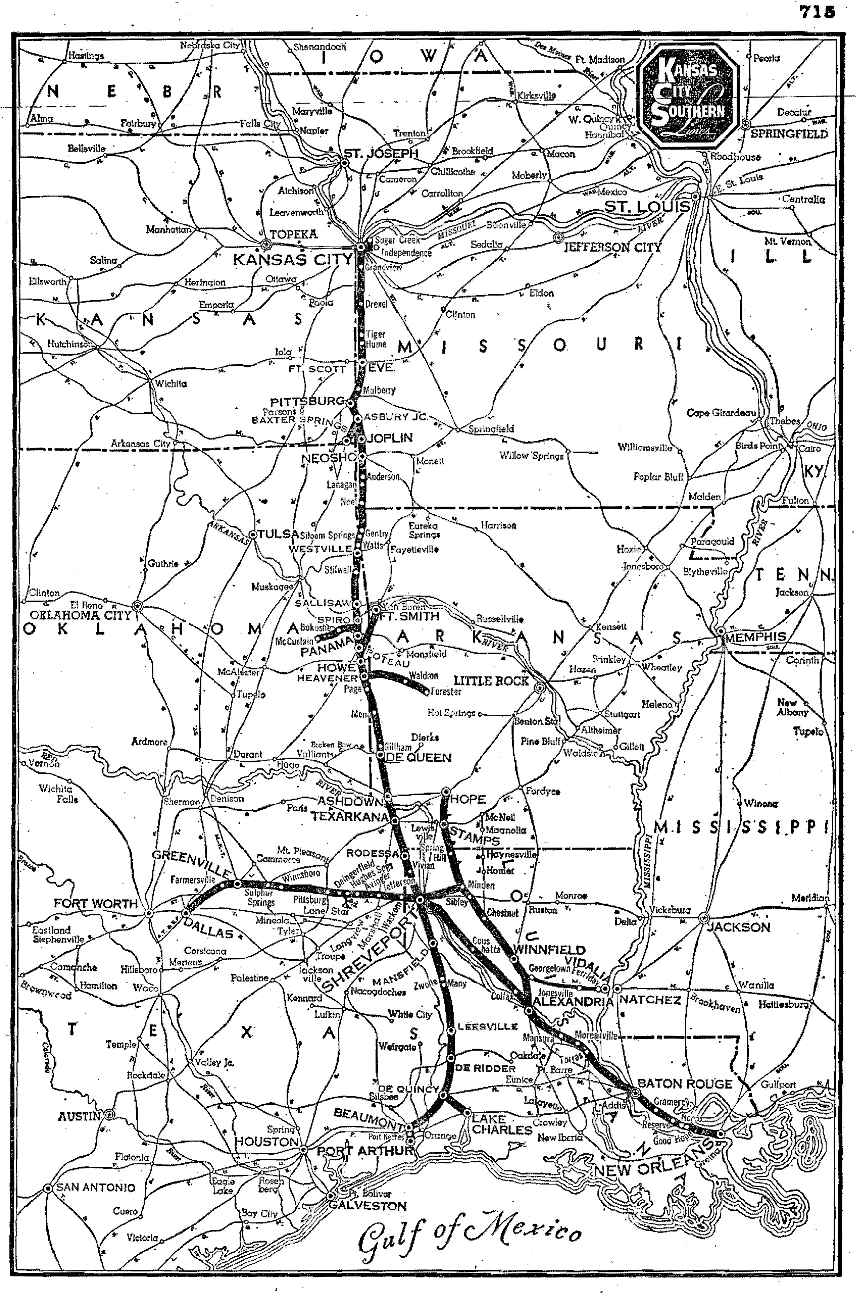 There was also an extension from Alexandria, Louisiana to Hope, Arkansas where additional interchanges were established with Missouri Pacific, Rock Island, and Cotton Belt.