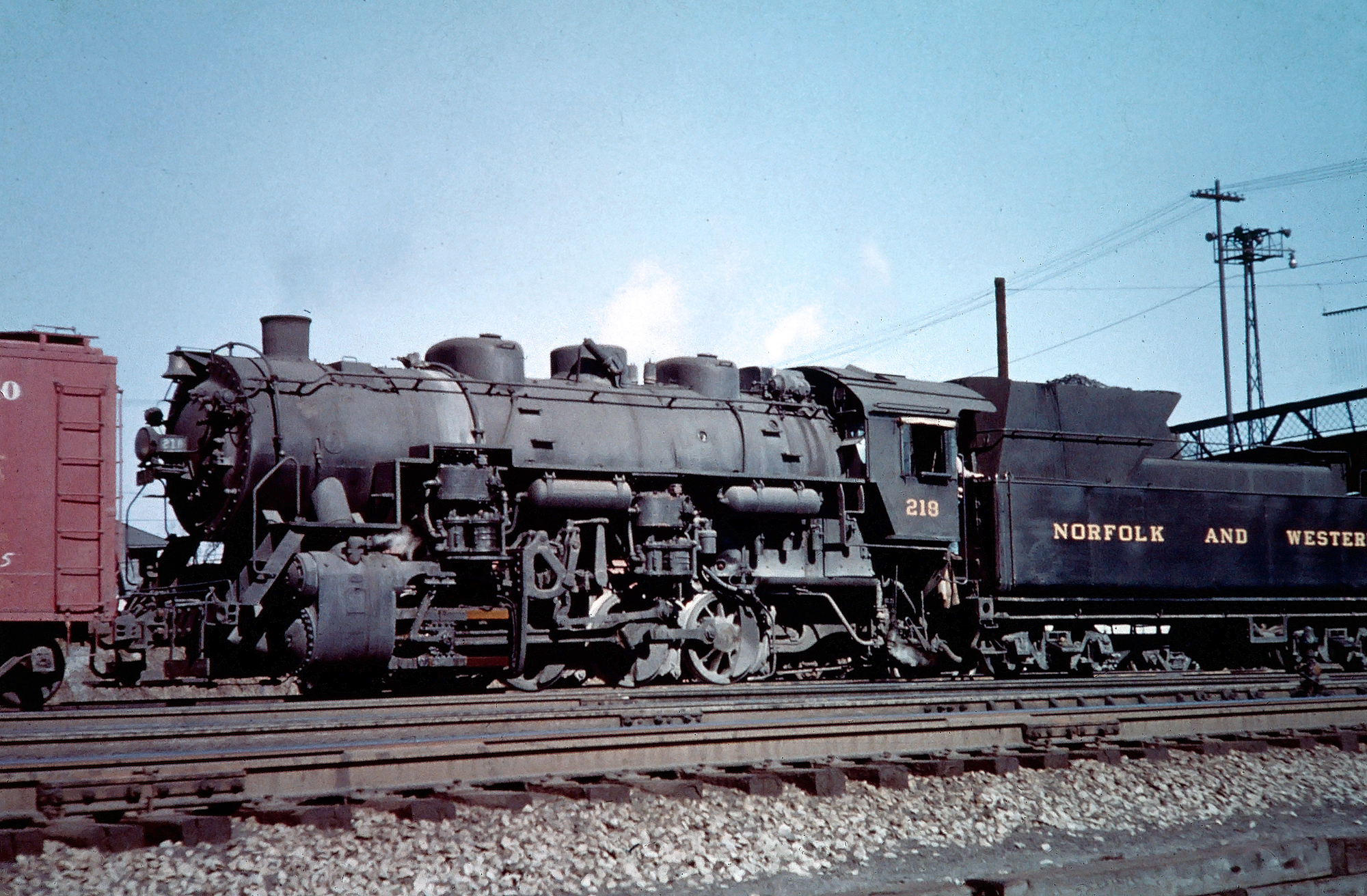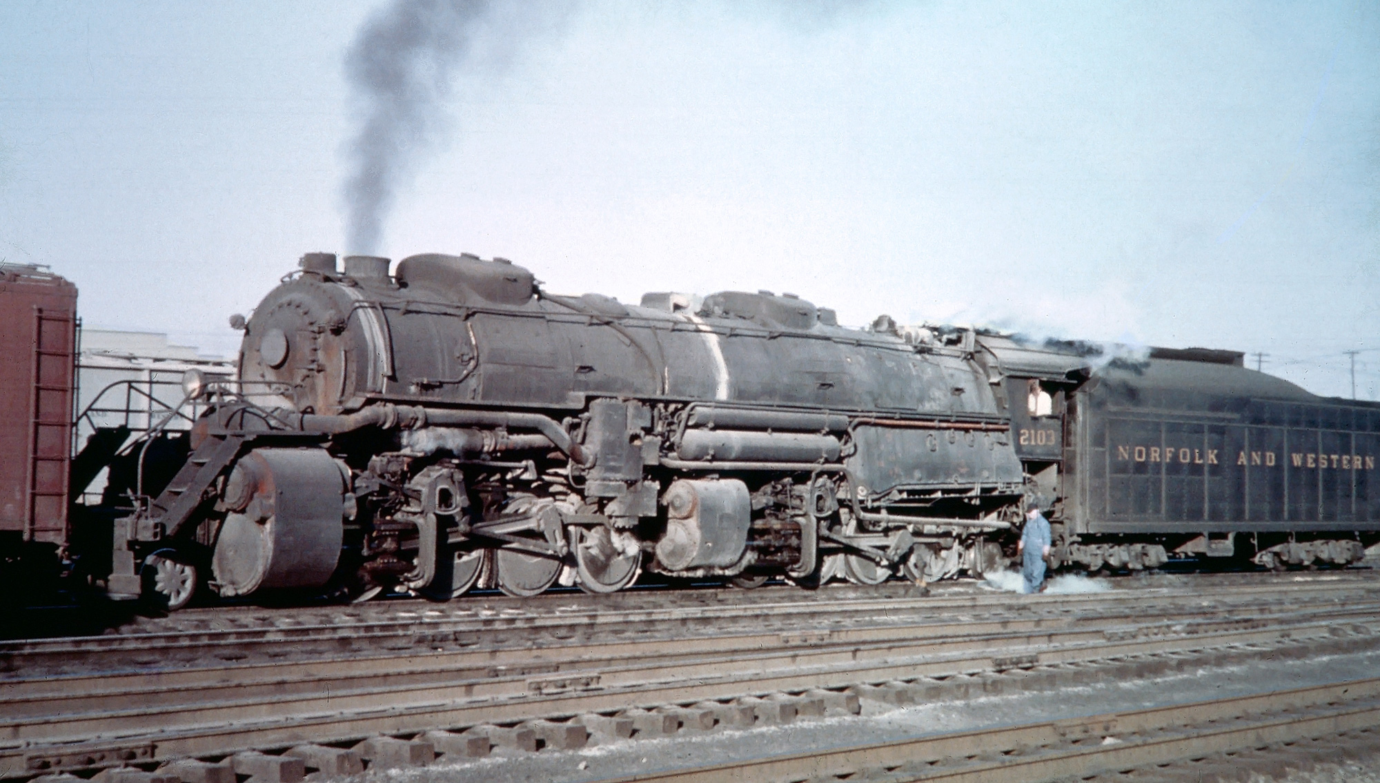 The big 2-8-8-2 compounds (Y's) handled the heavy drag assignments, muscling over the mountainous territory on the Pocahontas Division while 2-6-6-4's (A's) could speed time freights up to 70 mph on gentler grades. These latter units could also work duel assignments in passenger service.