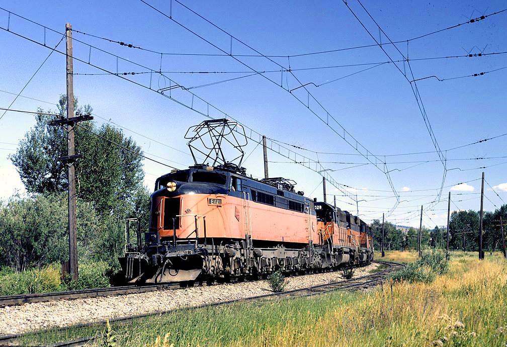 A pair of Milwaukee Road "Little Joes" and a GP9 lead time freight #264 along the Clark Fork River near Bearmouth, Montana on June 17, 1963. Ron Nixon photo.That year also saw the railroad open its own resort leading into the Yellowstone National Park in Gallatin Gateway, Montana called the Gallatin Gateway Inn, which would compete with what the Northern Pacific and Great Northern had to offer. For power the Milwaukee Road used a number of different electric locomotives on the Extension including General Electric-built boxcabs (Class EP-1 and EF-1), the unique Bi-Polars (Class EP-2), rare Baldwin-Westinghouse Quills (Class EP-3 they were somewhat similar to boxcabs) and finally the last motors ever purchased the highly powerful (and popular) "Little Joes" (Class EP-4 and EF-4). The Little Joes were purchased in the early 1950s to replace the Milwaukee Road’s aging fleet of electrics which consisted of elderly GE boxcabs; classes EP-1, EF-1, and EP-2 (Bi-Polars).