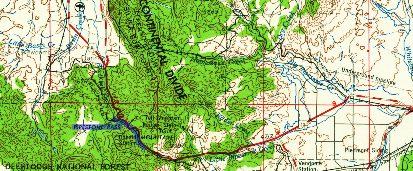 Survey work on this section of line between Lombard and Butte began in 1904 with surveyors determining that the lowest grade route over the Pioneer Mountains was through Pipestone Pass at the Continental Divide.