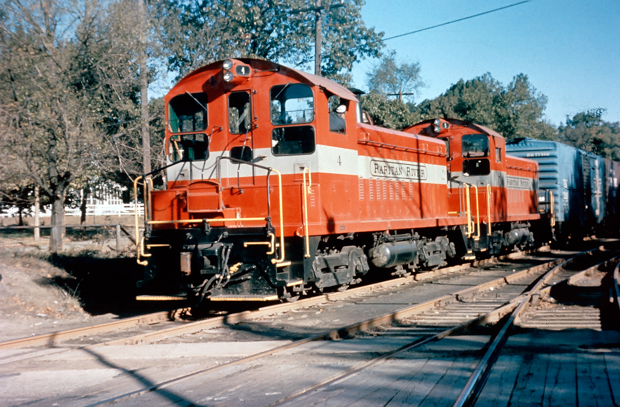 Raritan River Railroad SW900's #4 and #5 are busy at work in Parlin, New Jersey, circa 1958. These were acquired new in October of 1954. Meyer Pearlman photo. American-Rails.com collection.The inception of the Raritan River Railroad can be traced back to the burgeoning industrialization of the late 19th century. With factories, warehouses, and refineries dotting the landscape of central New Jersey, there was a burgeoning need for efficient transportation solutions.