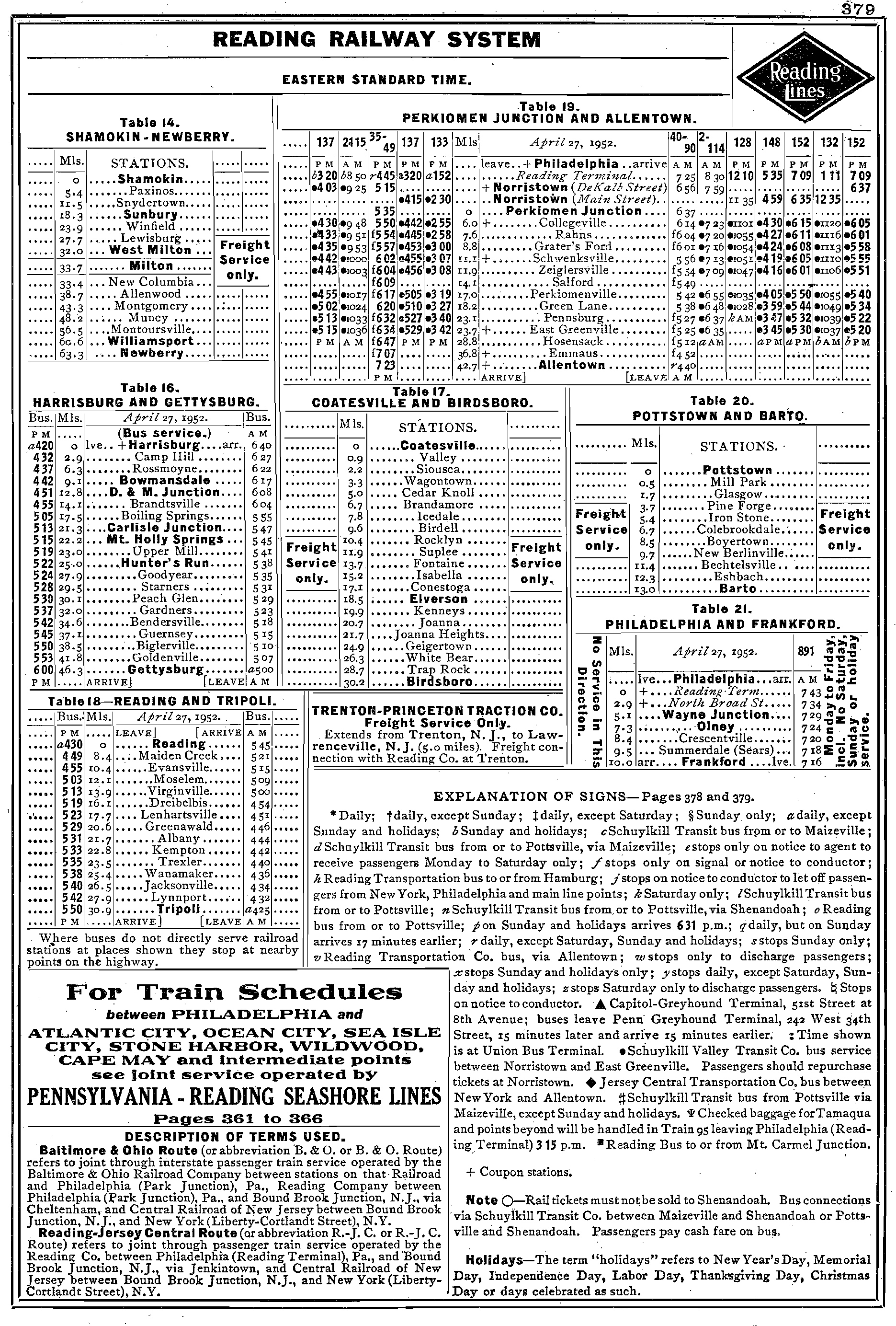 Philadelphia - Jersey City Philadelphia - Bethlehem, Pennsylvania Philadelphia - Reading, Pennsylvania Philadelphia/Camden - Atlantic City, New Jersey Manville - Port Reading, New Jersey Reading - Harrisburg, Pennsylvania Reading - Allentown, Pennsylvania Reading - Newberry Junction, Pennsylvania Reading - Wilmington, Delaware Harrisburg - Hagerstown, Maryland (Western Maryland) | |